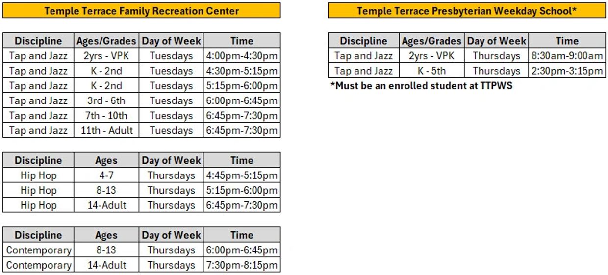 Elevate Dancers follows both the Hillsborough County Public Schools calendar and the facility closure schedules and will not hold classes if/when the facilities and/or schools are closed or unavailable due to weather, Holidays, elections, special events, etc.